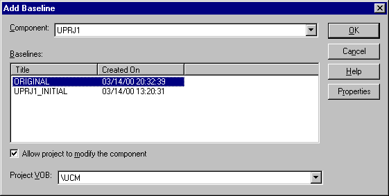 Choose the ORIGINAL baseline for the component UPRJ1, and ensure that the Allow project to modify component box IS checked, then press OK. Press Next, press Next (again) then press Finish.