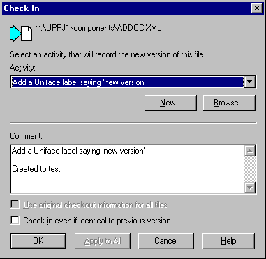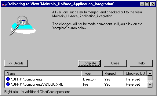 As a way of introducing ClearCase, we are continuing to go through a typical work-session using it with Uniface and UD6/CMtool Driver. In the previous section we checked out a form component. Now in this section we will follow the procedures described in the ‘Developing Software with ClearCase’ manual, to check in a modified form component.