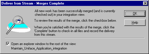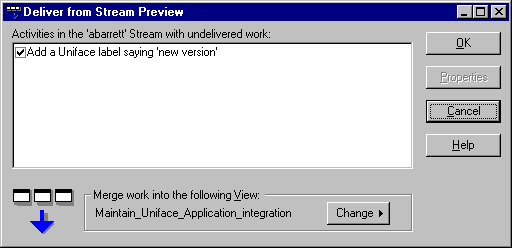 To deliver your work area, use Windows explorer to navigate to the root folder of the developer view, eg: Y:\. From the right-click menu select Deliver from Stream.