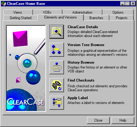 Using ClearCase Home Base, select the Elements and Versions tab, and then press Apply Label.