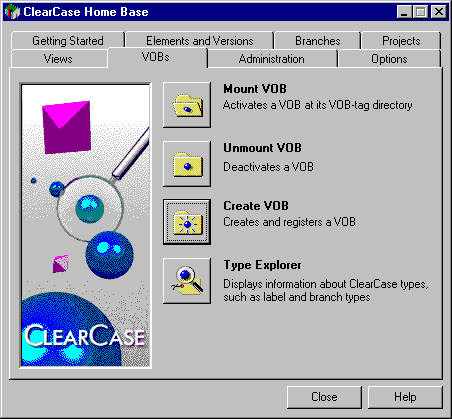 Create the VOB, using cleartool or a GUI tool like Clear Case Home Base, eg: