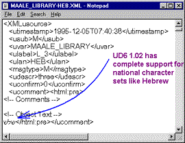 Whilst Uniface can store national character sets, it stores them in an unreadable format. When you look at your source code for Hebrew messages stored in Oracle or Solid, or export it using Uniface 7.2.05/6 XML format, then the resulsts are of little use: