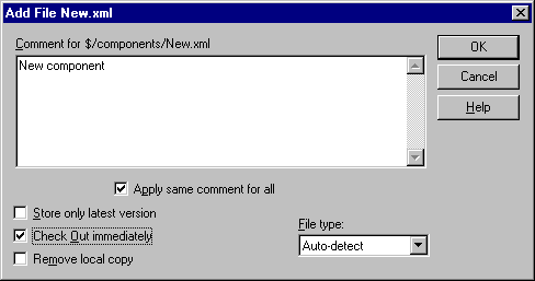 Enter a descriptive comment and ensure that the ‘Check Out immediately’ box is set.