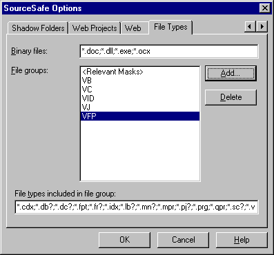 Visual source safe uses file groups to distinguish text and binary files for each development tool.