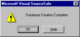 When the database has been created, Visual SourceSafe gives you this completion message: